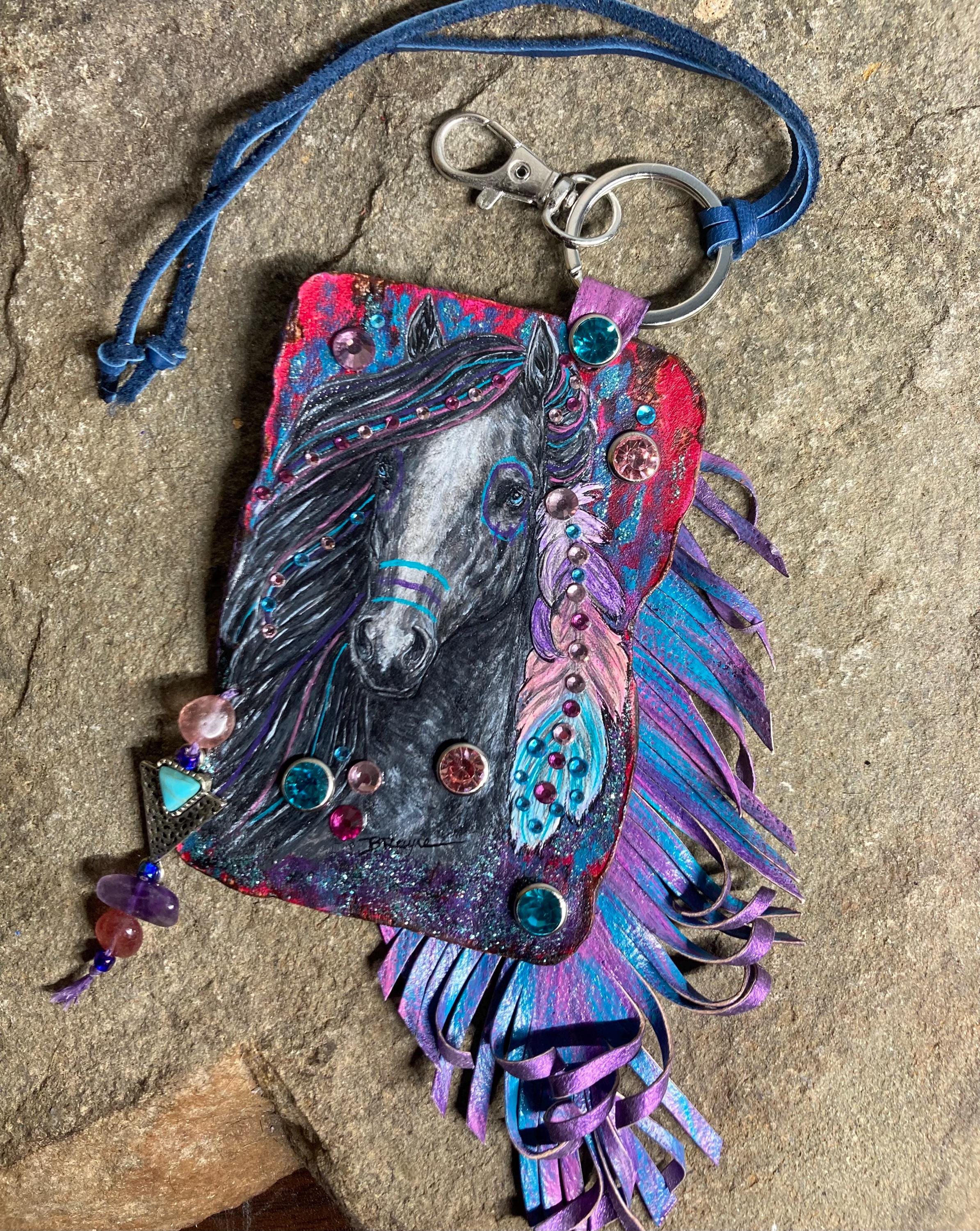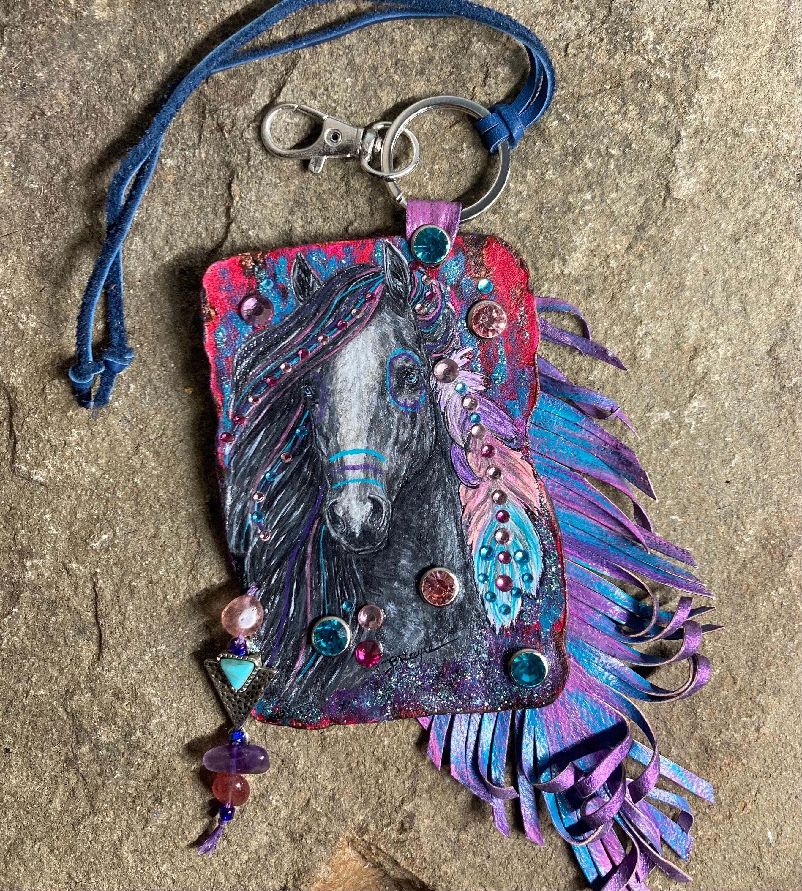 Ready to ship rhinestones and leather horse art charm bag decor / western bag embellishment / boho chick cowgirl bling