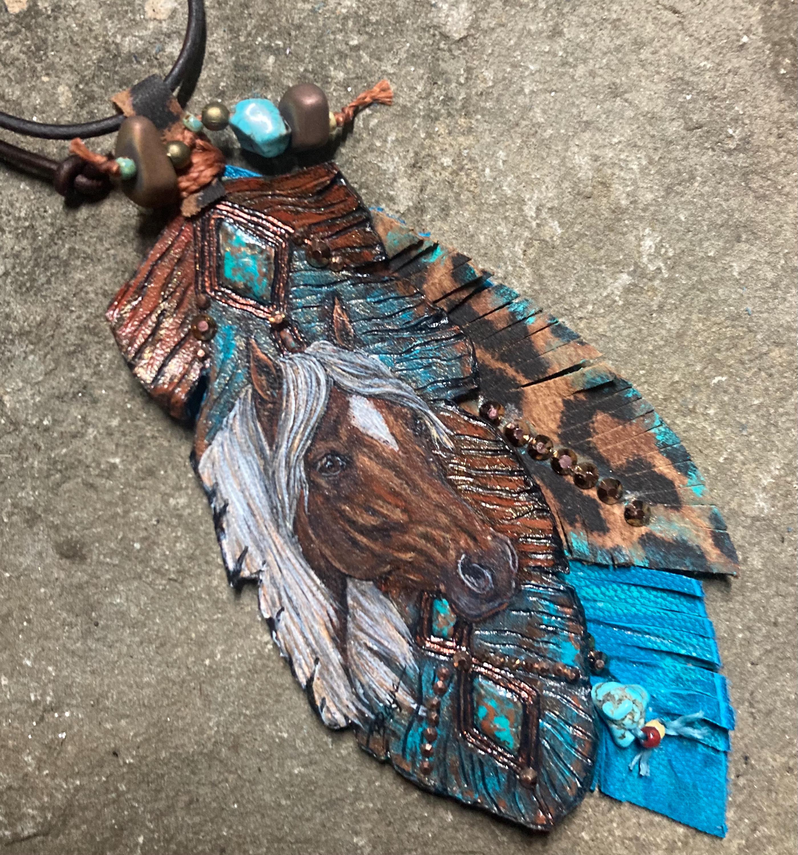 Custom Painted Made to Order Leather Horse Feather Charm, Western Cowgirl Bag Embellishment